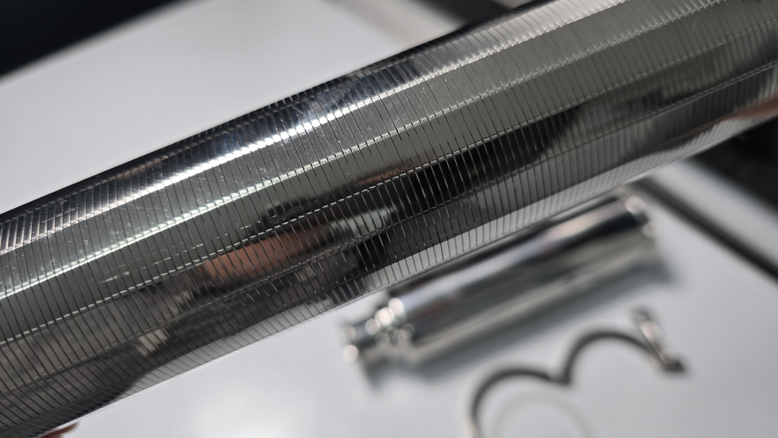 Ein Spaltsieb hat V-förmige Lamellen mit keilförmigen Spalten. Diese Form verhindert, dass sich Partikel festsetzen und blockieren. In der industriellen Filtration wird diese Technologie seit Jahren eingesetzt, weil sie sich durch Abkratzen oder Rückspülen einfach reinigen lässt.