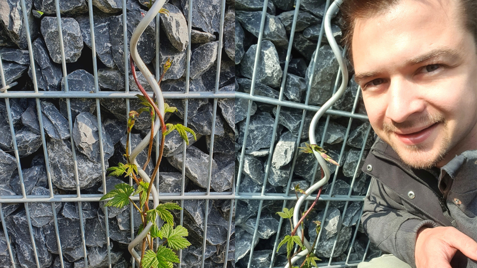 Gerade frisch geschossen sind folgende Fotos. Der Tradition hat schon die Höhe erreicht, bei der ich 2 der 3 Triebe links und rechts an der Gabionenwand anleiten werde.